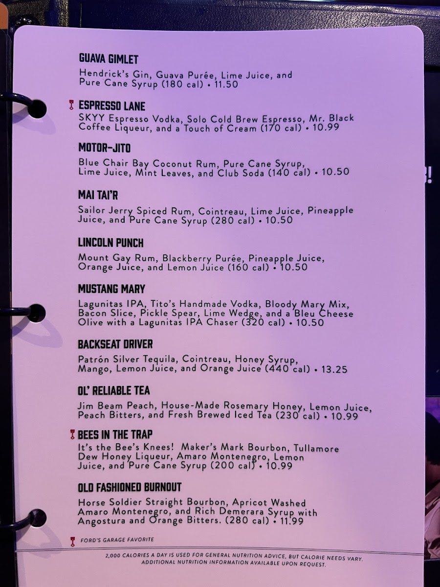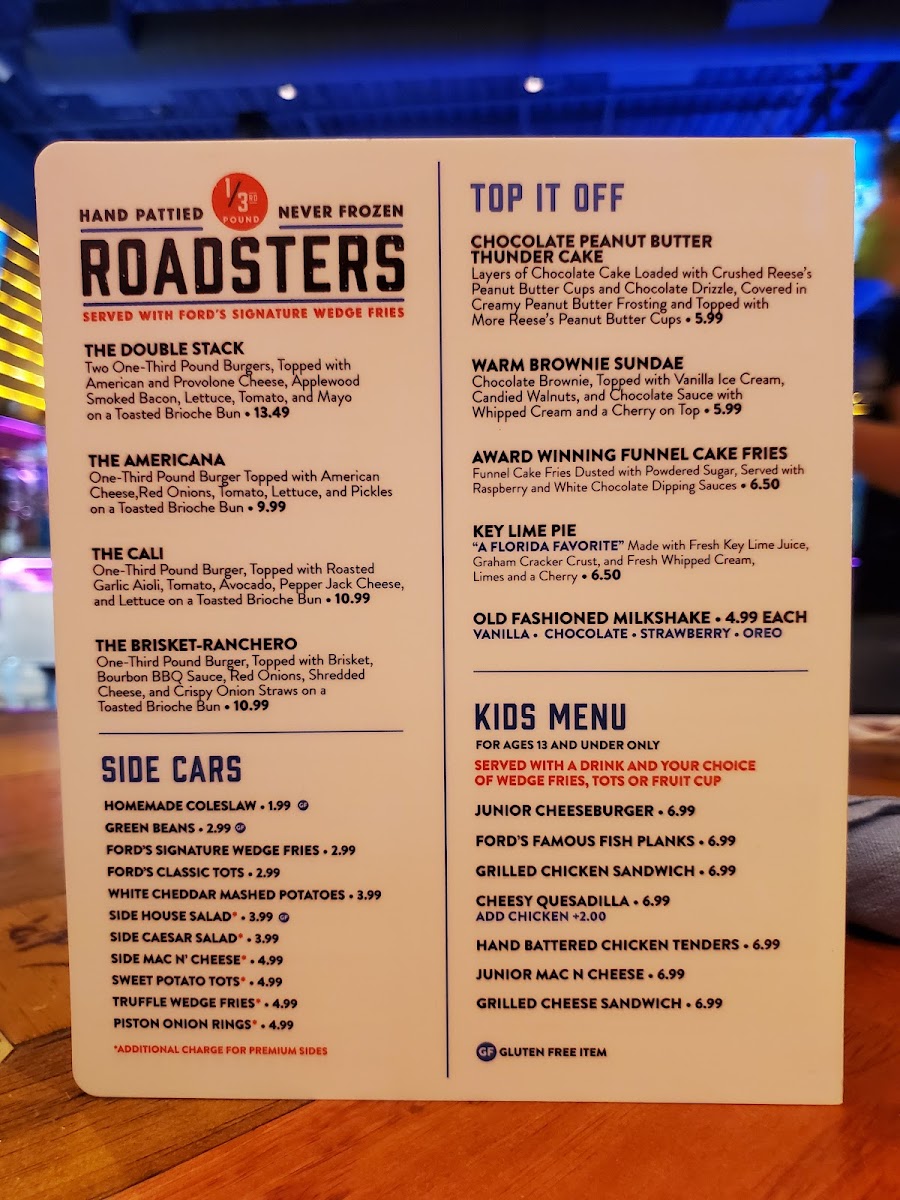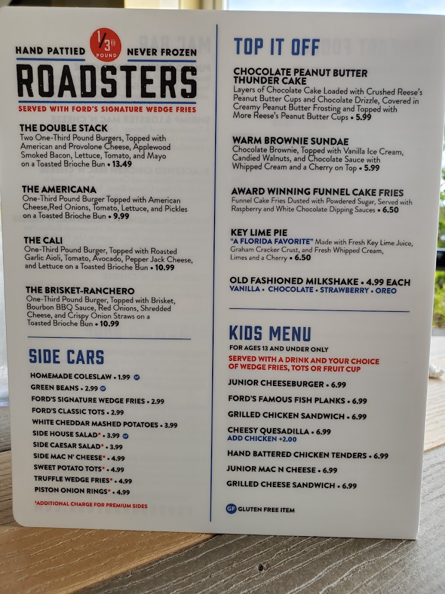 Ford's Garage Wesley Chapel Menu